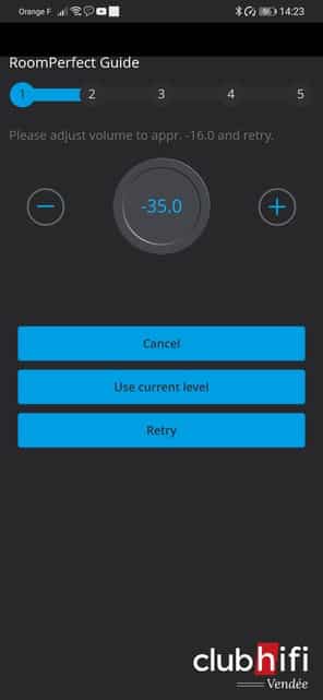 La calibration s’effectue en 4 étapes. Une première mesure du niveau sonore qui vous demandera à la fin d’ajuster le niveau, une seconde qui sera la mesure au point d’écoute. La troisième étape vous demandera d’effectuer des mesures aléatoire dans la pièce et la dernière étape correspond au calcul de filtre de l’algorithme.
