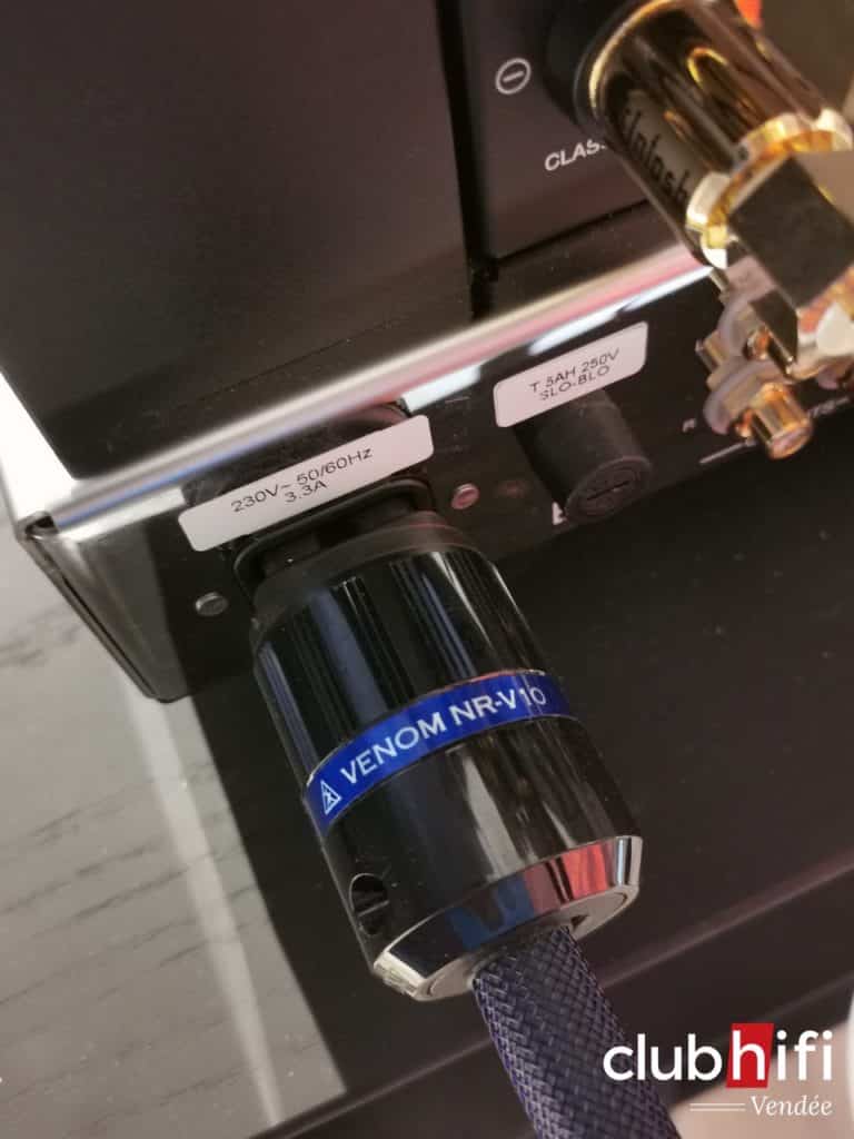 Il faudra cependant faire attention à respecter un ordre : dans un premier temps l’alimentation de l’amplificateur avec un Venom V10 NR et ensuite la source avec un Venom V12 NR.