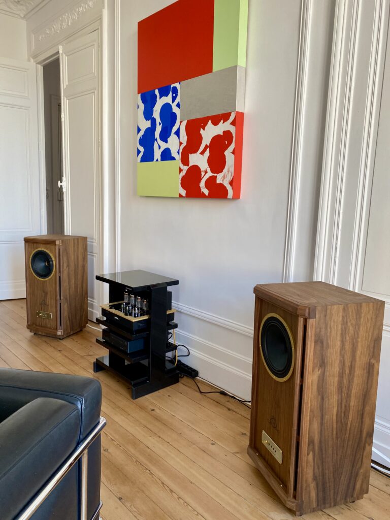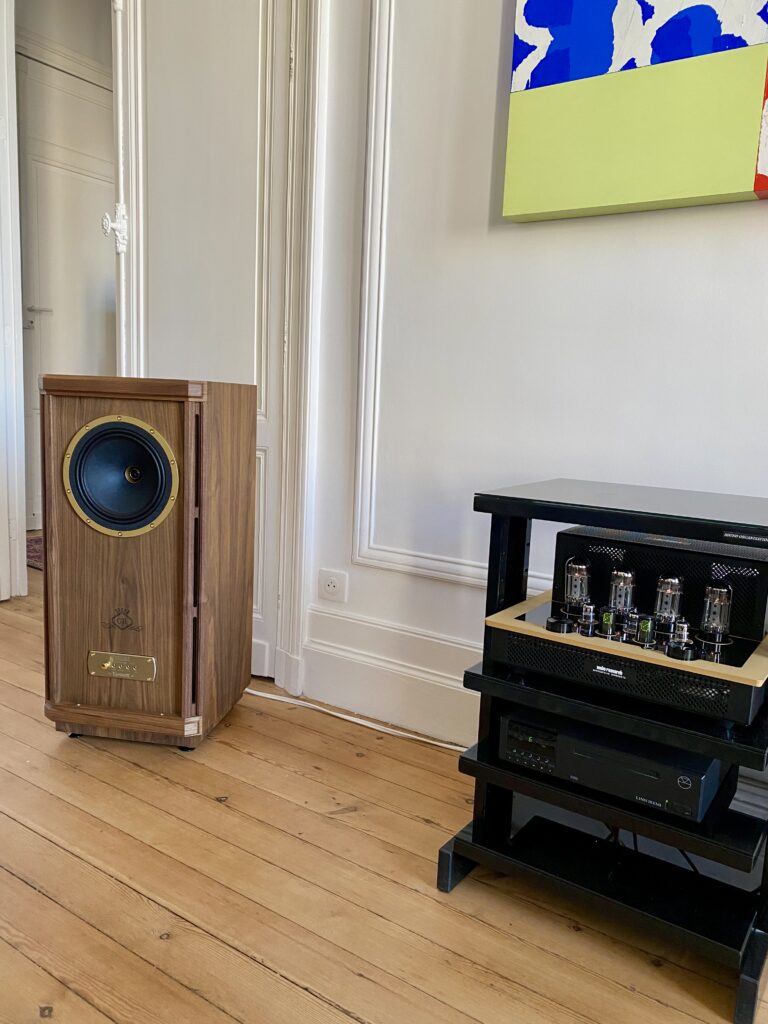 Côté enceintes, il a eu un véritable coup de cœur – et on le comprend aisément ! – pour les Tannoy Stirling GR, modèle emblématique de la célèbre maison britannique. À la fois généreuses, précises et vivantes, ces enceintes incarnent avec brio l’esprit musical de Tannoy.