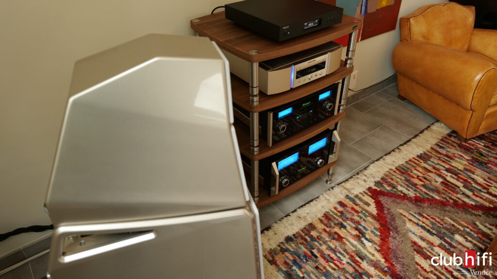 Pour faire chanter ces deux enceintes d’exception, nous mettons à contribution les électroniques McIntosh avec le préamplificateur à tubes C2700 et l’amplificateur de puissance stéréo MC462. La source est confiée au serveur audio Melco N1Z / 2EX-H50 raccordé en USB au DAC du préampli McIntosh C2700.