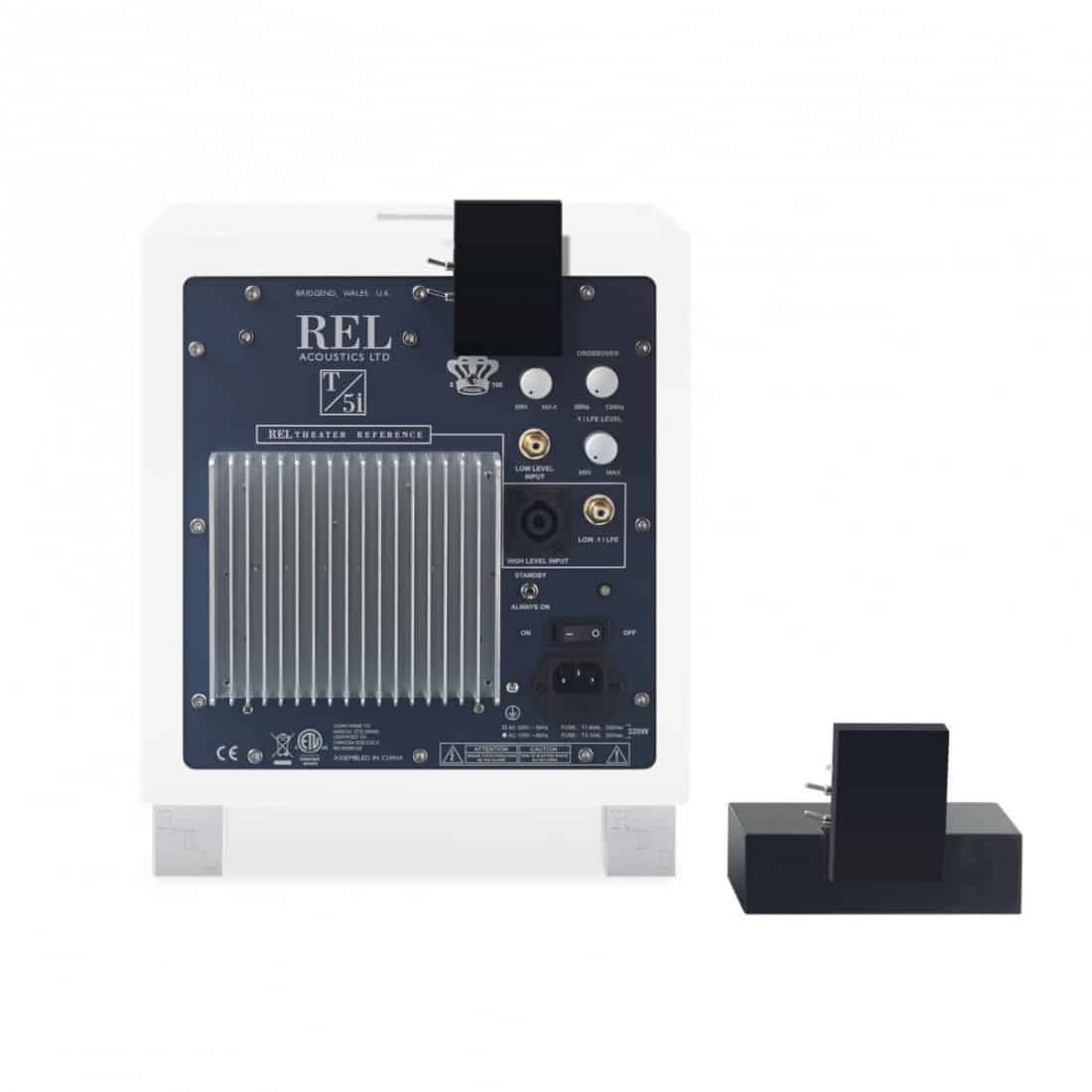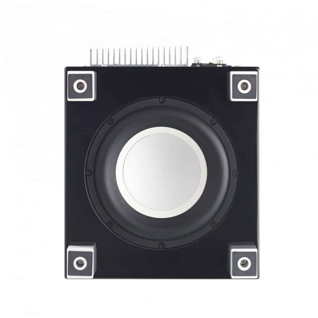 Le caisson de basses T/5i est le grand frère du T Zéro. Son coffret anti-vibration dispose d’un haut-parleur de 200 mmn à long débattement et orienté vers le sol. Côté amplification, notons la présence d’une module en classe A/B, d’une puissance de 125 W.