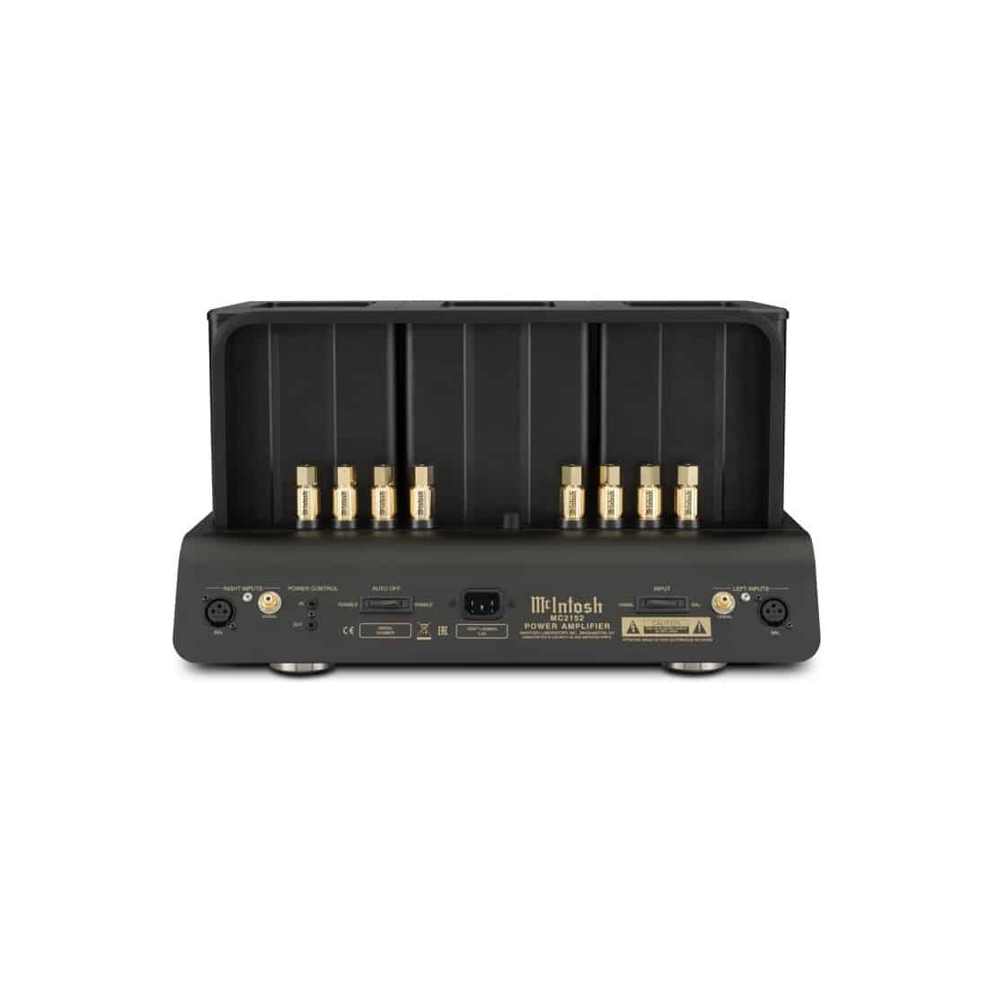 A l’arrière du MC2152, nous retrouvons des entrées symétriques XLR et asymétriques RCA, mais aussi les borniers haut-parleurs brevetés Solid Cinch TM et la technologie Power Control pour simplifier la mise sous tension / hors tensions des appareils.
