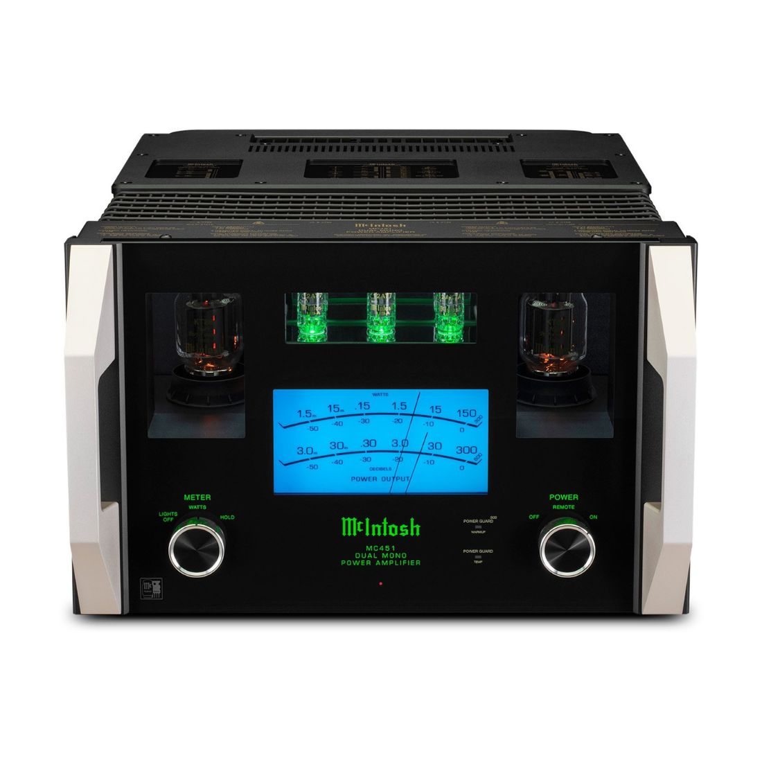 Le McIntosh MC451 possède une amplification à tubes de 150W, pour alimenter les hauts parleurs de médium et d’aigu, s’apparentant ainsi à l’amplificateur de puissance MC1502. Elle se compose de quatre tubes de puissance KT88 couplés à deux tubes 12AT7 et un tube 12AX7A pour le traitement des signaux.