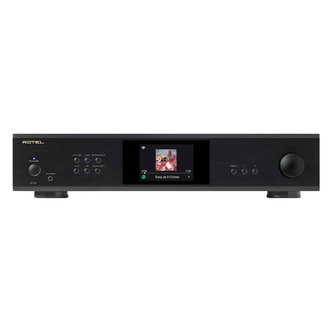 Pratique et intuitif, le S14 prend en charge les connexions par câble et Wi-Fi pour une grande flexibilité d’installation. La pochette d’album, la piste, le titre et l’artiste sont présentés sur l’affichage graphique couleur du panneau avant. Le panneau avant, la télécommande fournie ainsi que l’application dédiée Rotel permettent une installation, une configuration et une prise en main simplifiée de l’appareil.