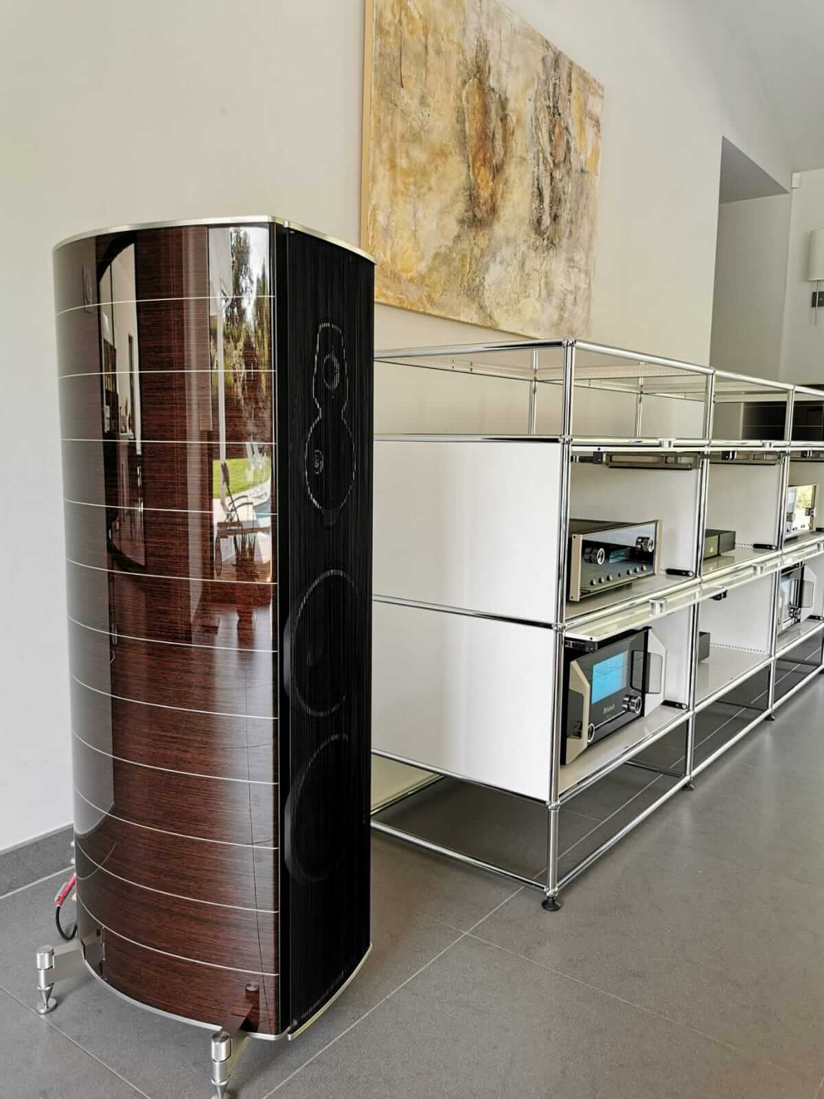 La Sonus Faber Amati Tradition représente l’aboutissement de la gamme Homage Tradition. Nous retrouvons beaucoup de technologies issues des recherches électro-acoustiques effectuées pour l’Aida II. En comparaison à sa petite soeur la Serafino, l’Amati Tradition offre un équilibre tonal très différent et une maîtrise du bas du spectre plus prononcée grâce à un volume de caisse augmenté. Comme toute la gamme Homage Tradition, l’Amati Tradition est une véritable oeuvre d’art dont l’esthétique luxueuse s’inspire de la tradition des bateaux italiens.